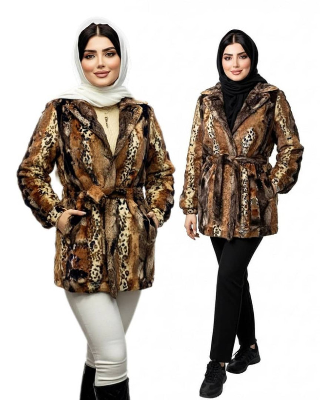 توجه: طرح دوم که پلنگی رنگ روشن هستش بدون یقه فقط موجود هستش.